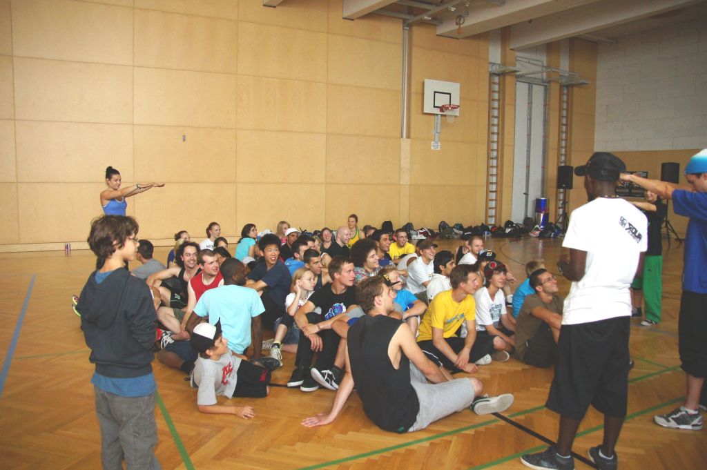 GALLERY: Abramz facilitating a 5 hour creative session during the ‘Four Elements’ international Hiphop convention in Graz, Austria in 2010. The session brought together people of various nationalities, age groups, art-forms and skill levels. The session was made up of movement, games, dance, sound and group discussions.